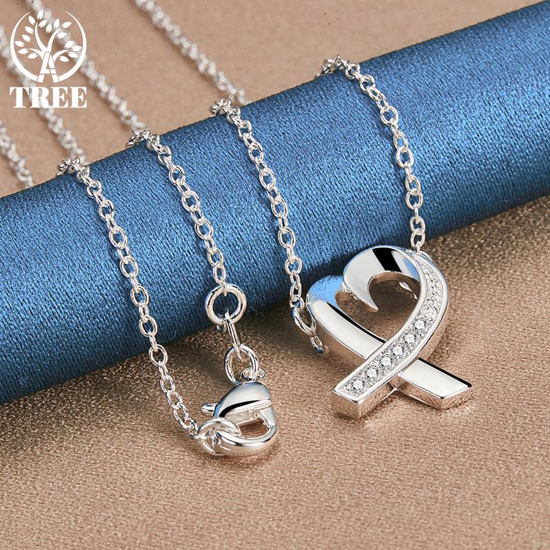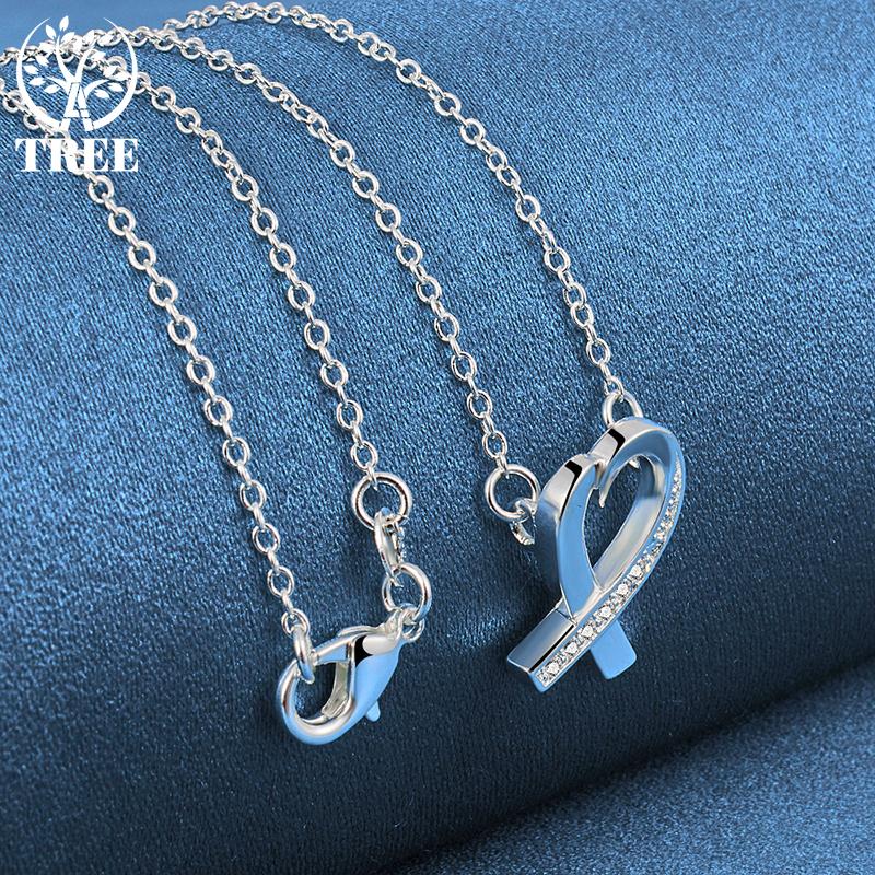 Ювелирные изделия из стерлингового серебра 925 пробы, 18-дюймовая цепочка с подвеской в виде сердца AAA с цирконом
