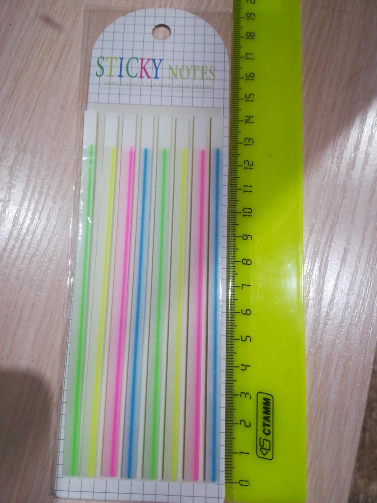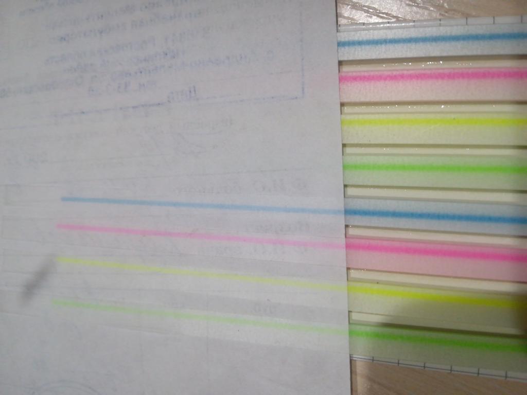 Отличные полоски для выделения текста. Зелёный с жёлтым не сильно видно, синий и розовый хорошо, в целом неплохо. За 1 балл. Спасибо, Джум)