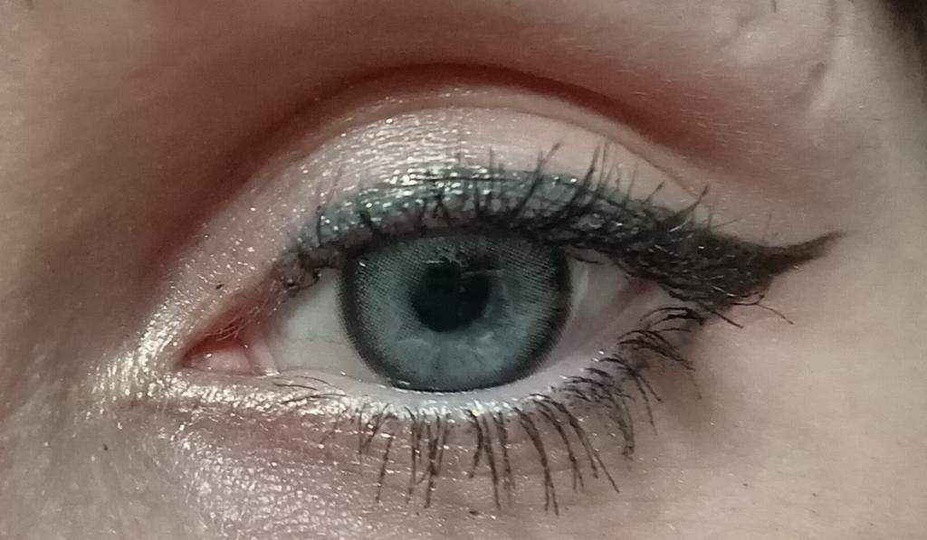 Не сильно перекрыл карий цвет, немного расширил. На моих глазах не так ярко, как на фото. Чуток серой дымки.