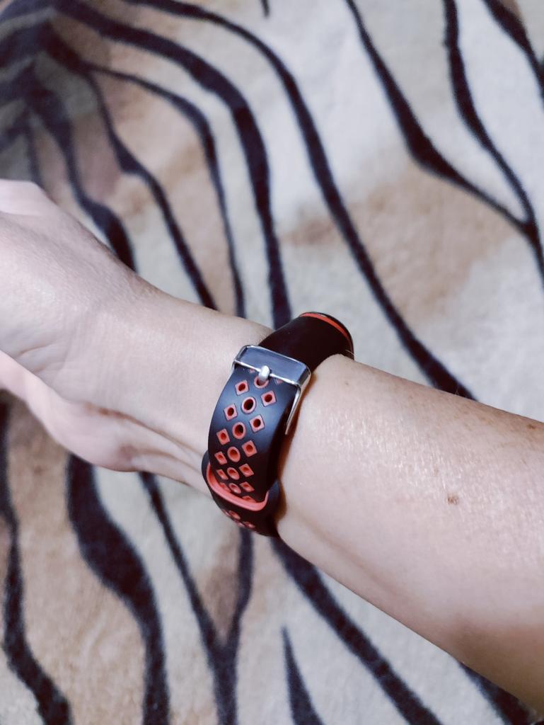 Отличный ремешок. Чуть раньше купила красный с чёрным. Мне очень понравился такой вариант. Застёжка, как на ремешках от часов. Удобно застёгивать и крепко держится. Силикон мягкий и плотный, приятный на ощупь. Сейчас купила в этом цвете, тоже всё супер. Ношу с удовольствием, меняю в зависимости от цвета одежды и настроения 😉😎😏👍🏻 Доставка три недели, трек полностью отслеживался. Спасибо большое 🤗 продавцу за хороший товар и Джуму за доставку. Удобно, буду рекомендовать! 😉👍🏻
