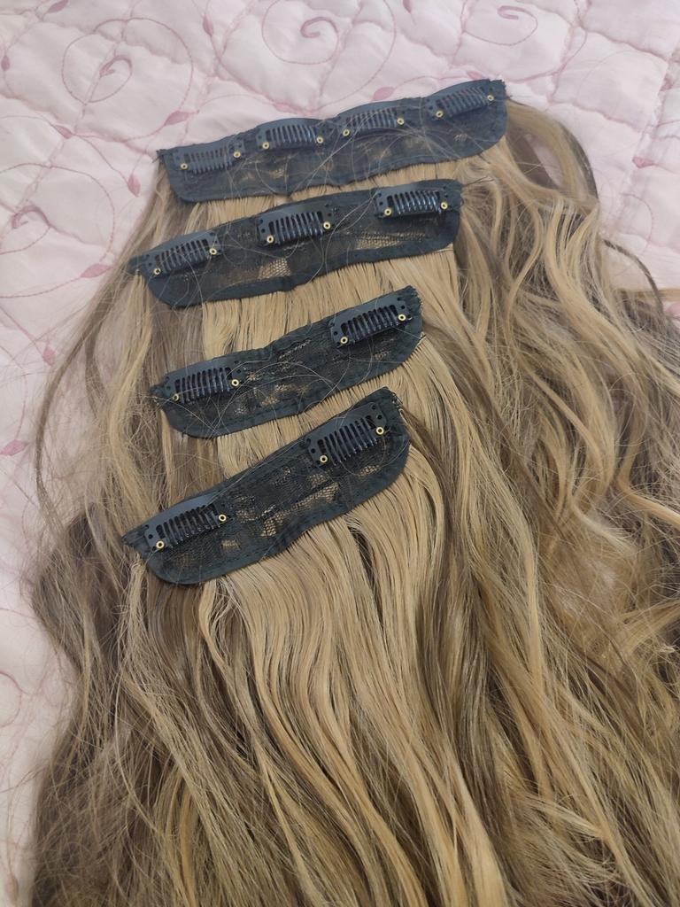 Абалденные волосы на заколках В комплекте четыре пряди. Одна на 4 заколки, вторая на 3 заколки, и две штуки на 2 заколках. Держатся очень крепко, надёжно. Сами волосы не однотонные, а будто с мелированием. Они не лезут. Слегка путаются, но поддаются расчёсыванию. Очень нравится укладка волнами. Покупала для фото, чтобы делать имитацию парика. Мне очень нравится. К покупке рекомендую ❤️