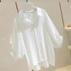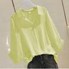 Хлопковая женская свободная рубашка большого размера с рукавом 3/4, женский летний простой пуловер, топ с v-образным вырезом и рукавами «летучая мышь», рубашка-поло