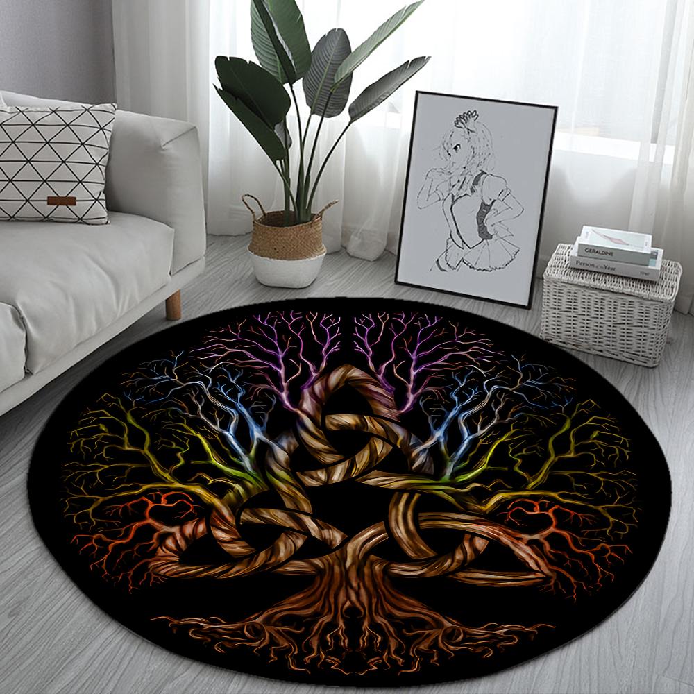 Домашние психоделические черные круглые коврики с изображением дерева викингов, коврик для дивана, домашняя гостиная, спальня, ванная комната, напольные коврики, принт, украс...