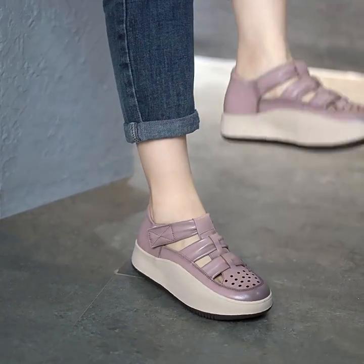 Johnature/женские сандалии из натуральной кожи в стиле ретро на толстой подошве, удобные дышащие туфли ручной работы на плоской подошве с круглым носком — купить товар онлайн с бесплатной доставкой по всему миру!