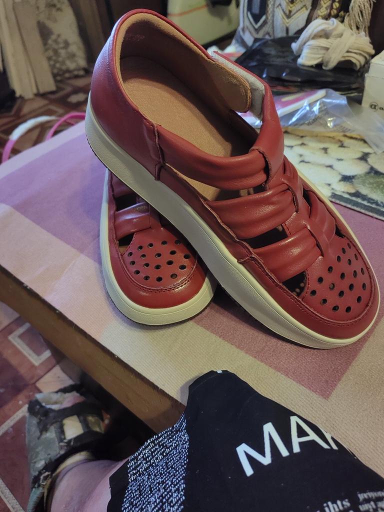 Покупала по отзывам Татьяны Морозовой. Она написала,что сандалии не тяжелые... Но в действительности они ТЯЖЕЛЫЕ. ОДИН ПЛЮС-кожа МЯГКАЯ. При примерке : Удобные; Мягкие; Хорошо держат голеностопный сустав. Подошли на широкую ногу р. 38,5.