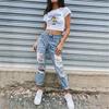 (SU)Женские джинсы с высокой талией на пуговицах и карманами с эластичными отверстиями Брюки Тонкие джинсовые брюки