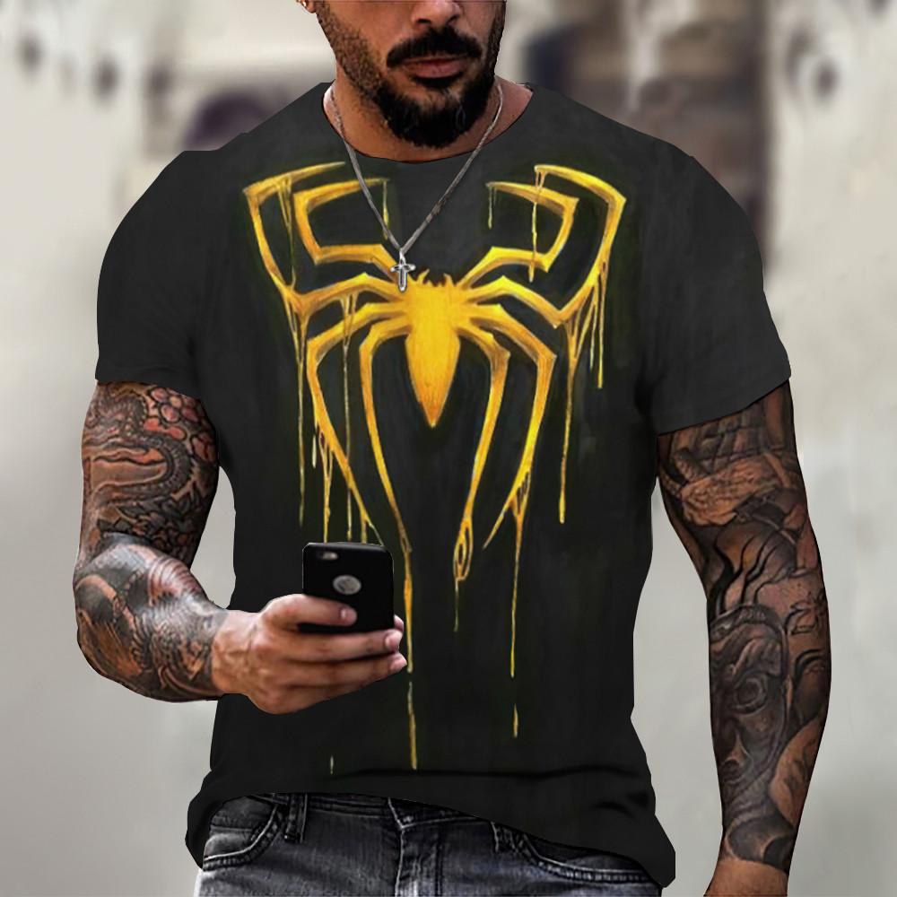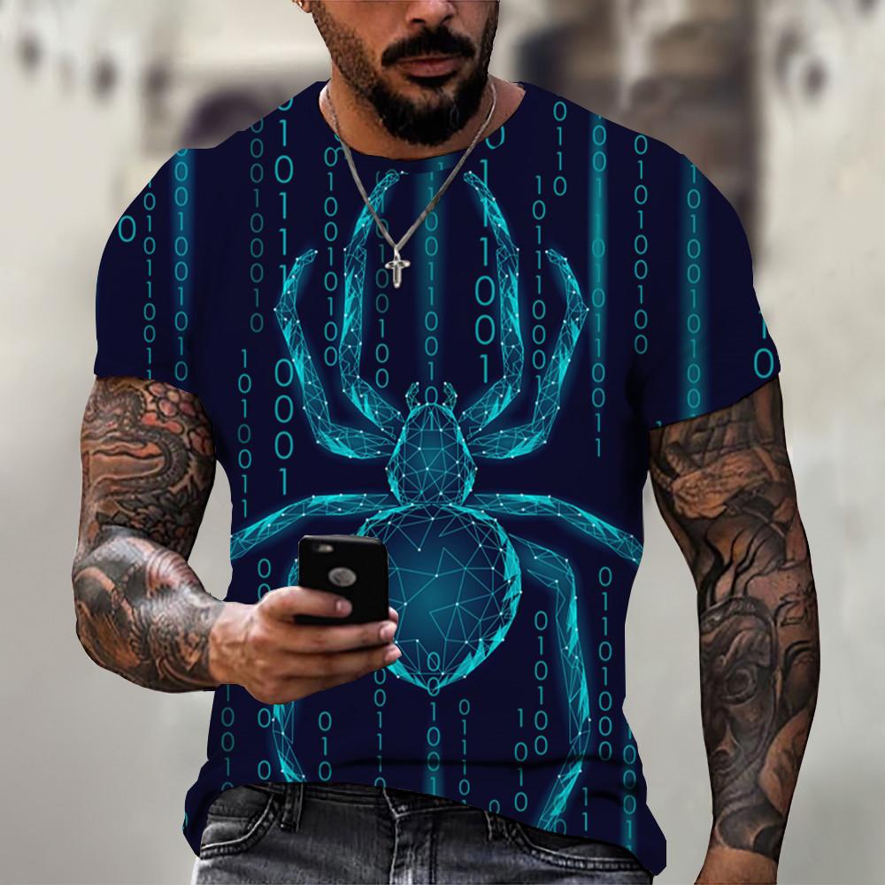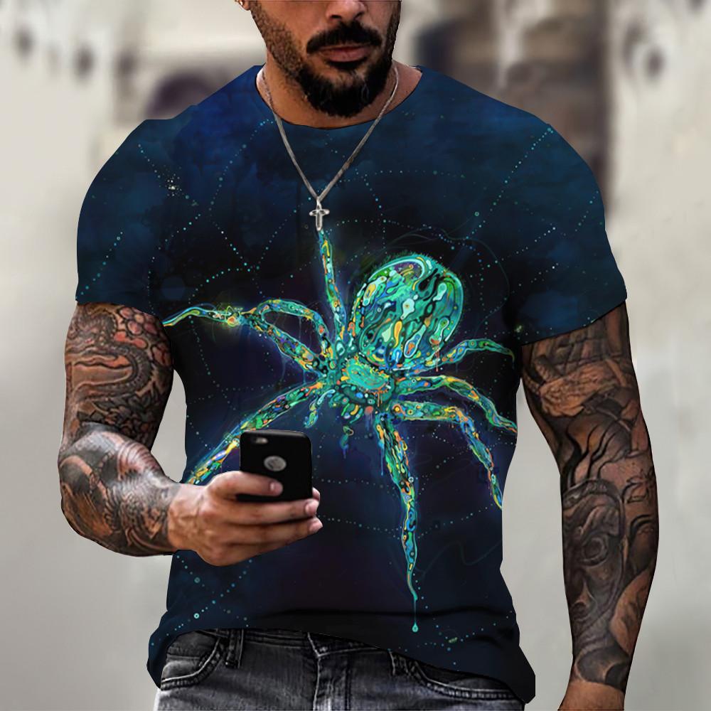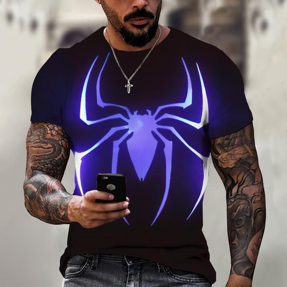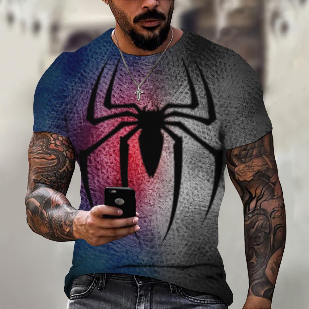 Мужская футболка, летняя красная футболка с 3D принтом паука, мужская крутая футболка с коротким рукавом и круглым вырезом в виде паука, мужская одежда оверсайз