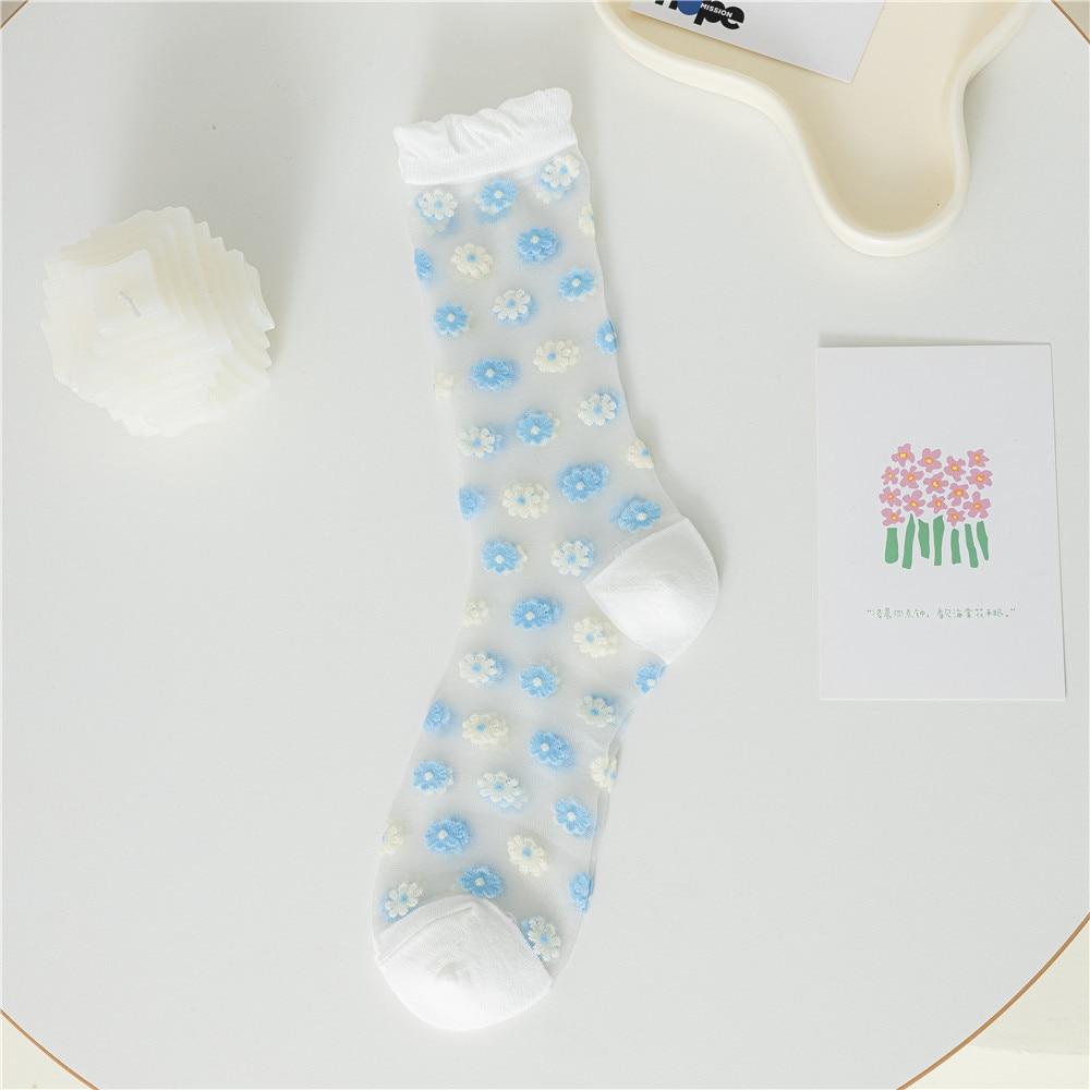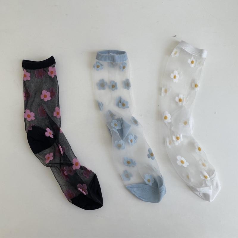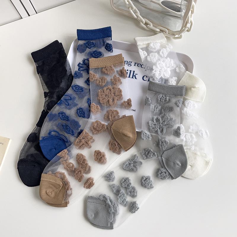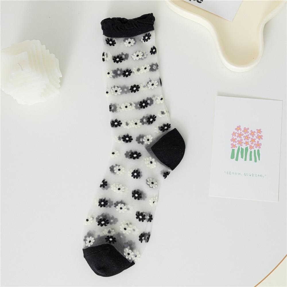 Летние ультратонкие прозрачные женские носки, корейские модные шелковые носки с цветочной вышивкой и кристаллами, винтажные нейлоновые длинные носки в стиле Харадзюку