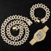 20 мм ожерелье + часы + браслет в стиле хип-хоп Майами бордюрная кубинская цепочка со льдом, стразы с цирконием, блестящие рэперы для мужчин, ювелирные изделия