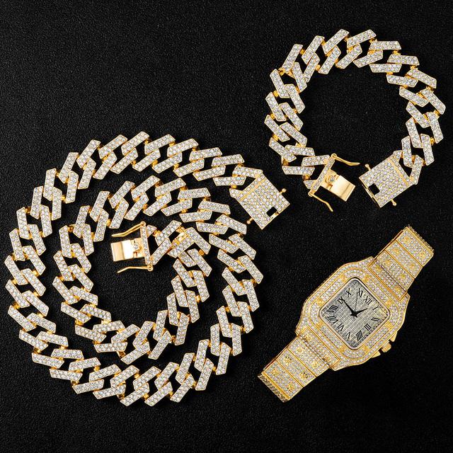 20 мм ожерелье + часы + браслет в стиле хип-хоп Майами бордюрная кубинская цепочка со льдом, стразы с цирконием, блестящие рэперы для мужчин, ювелирные изделия — купить товар онлайн с бесплатной доставкой по всему миру!