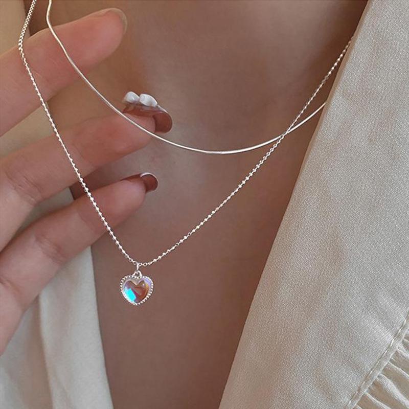 Kpop ожерелье в форме сердца, французское ожерелье Lucky Bean Love, цепочка на ключицы, корейское простое женское двухслойное ожерелье, женский кулон для женщин