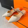 Тапочки для отдыха, женские шлепанцы, туфли-лодочки, обувь на квадратном среднем каблуке для женщин, однотонные блестящие тапочки с острым носком, большие размеры