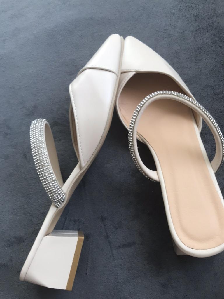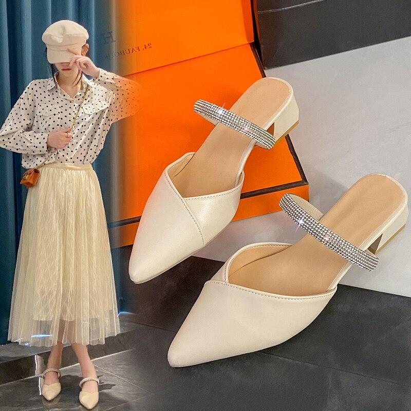 Тапочки для отдыха, женские шлепанцы, туфли-лодочки, обувь на квадратном среднем каблуке для женщин, однотонные блестящие тапочки с острым носком, большие размеры — купить товар онлайн с бесплатной доставкой по всему миру!