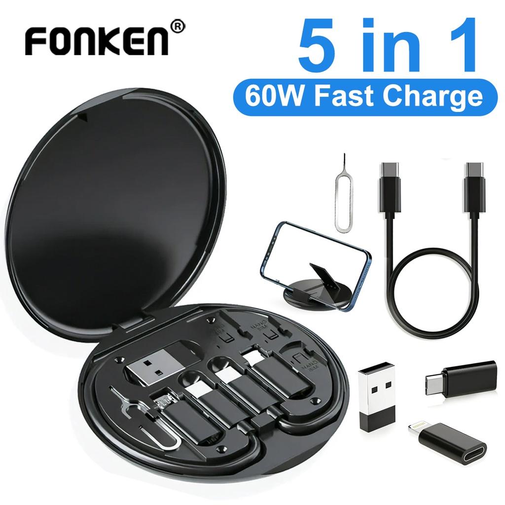 Fonken 5 в 1, 60 Вт, коробка для хранения кабеля для быстрой зарядки, держатель для мобильного телефона, коробка для хранения с разъемом для карты, кабель для передачи данных