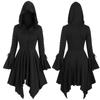 Женские топы с капюшоном, рукавами на шнуровке, на пуговицах, с юбкой, готическое пальто