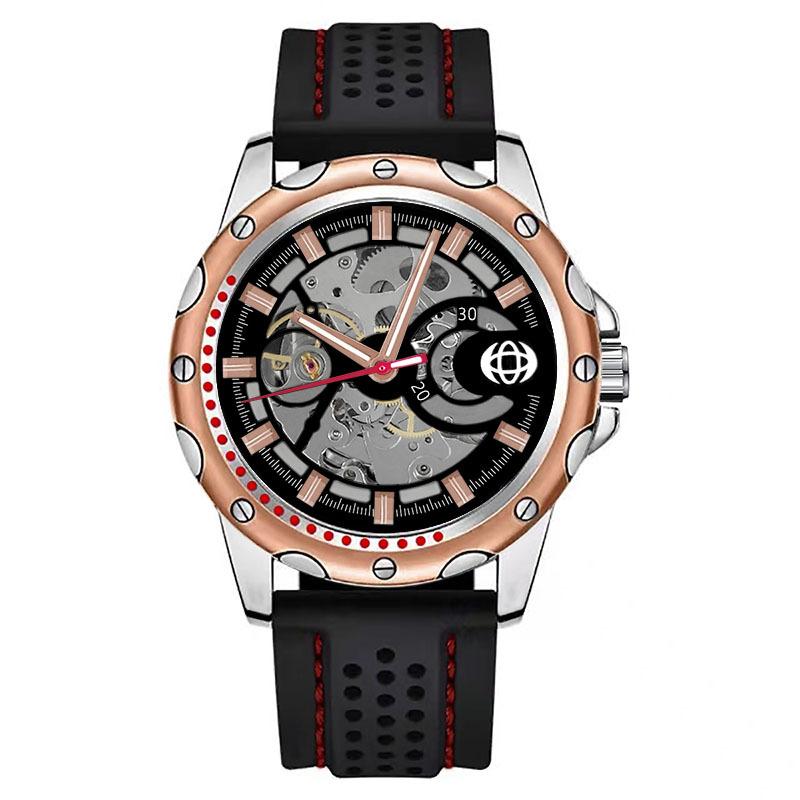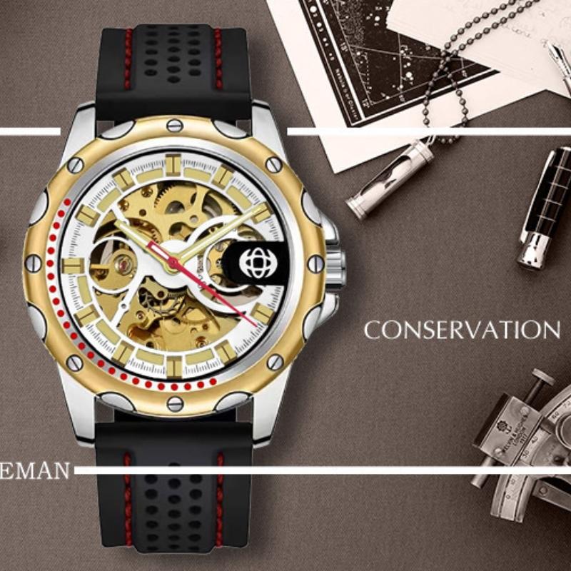 Автоматические механические часы с силиконовым ремешком, мужские водонепроницаемые светящиеся трендовые мужские часы со скелетом, красные часы с механическим механизмом