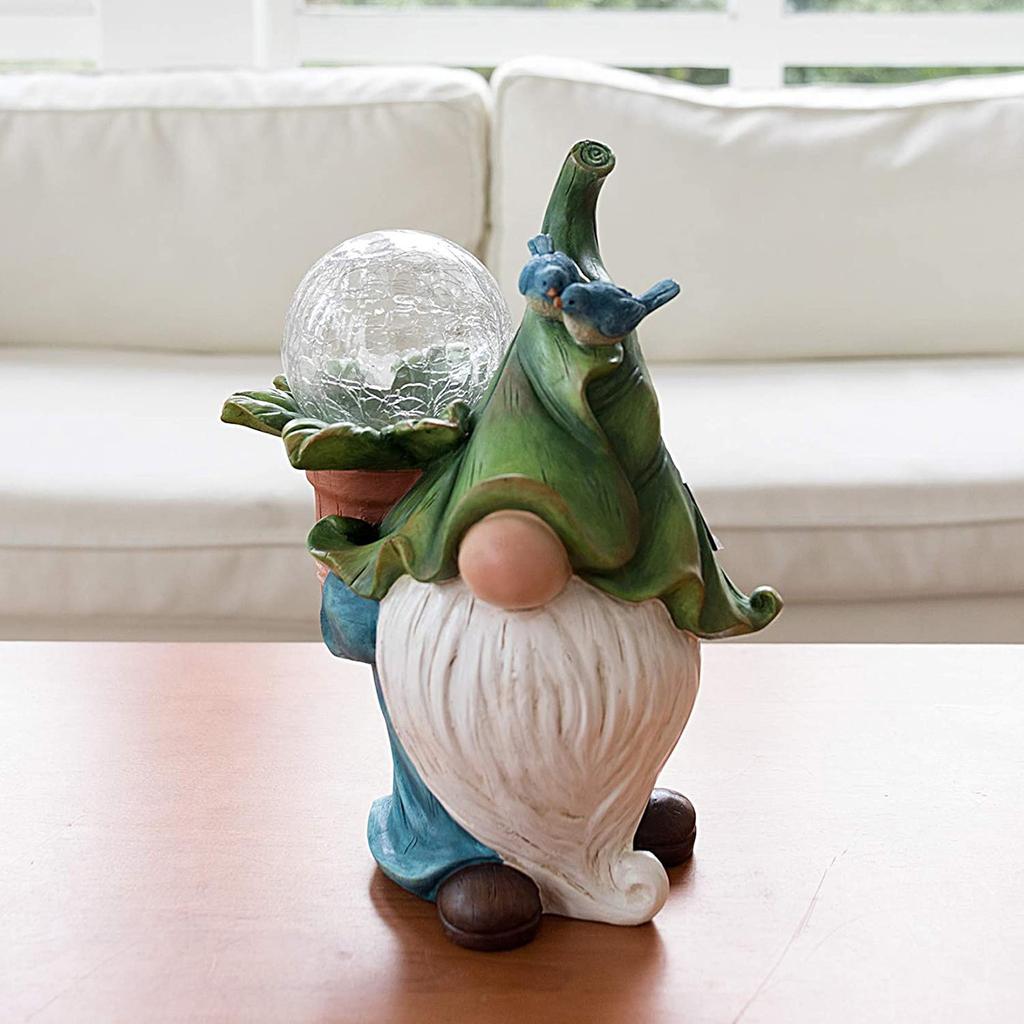 Статуя садового гнома - статуя гнома из смолы с шаром и солнечным светодиодным фонарем