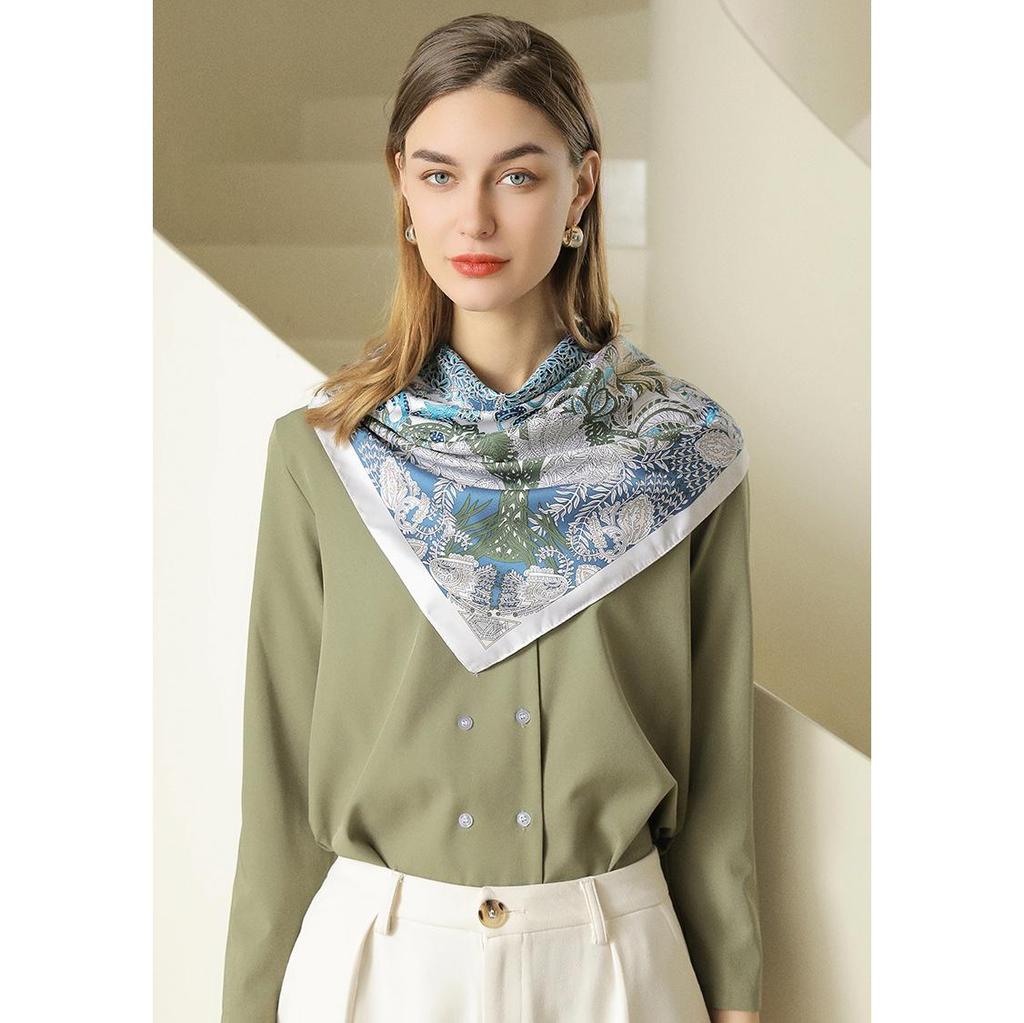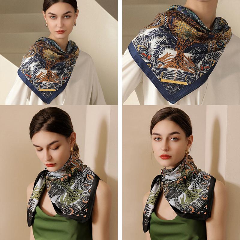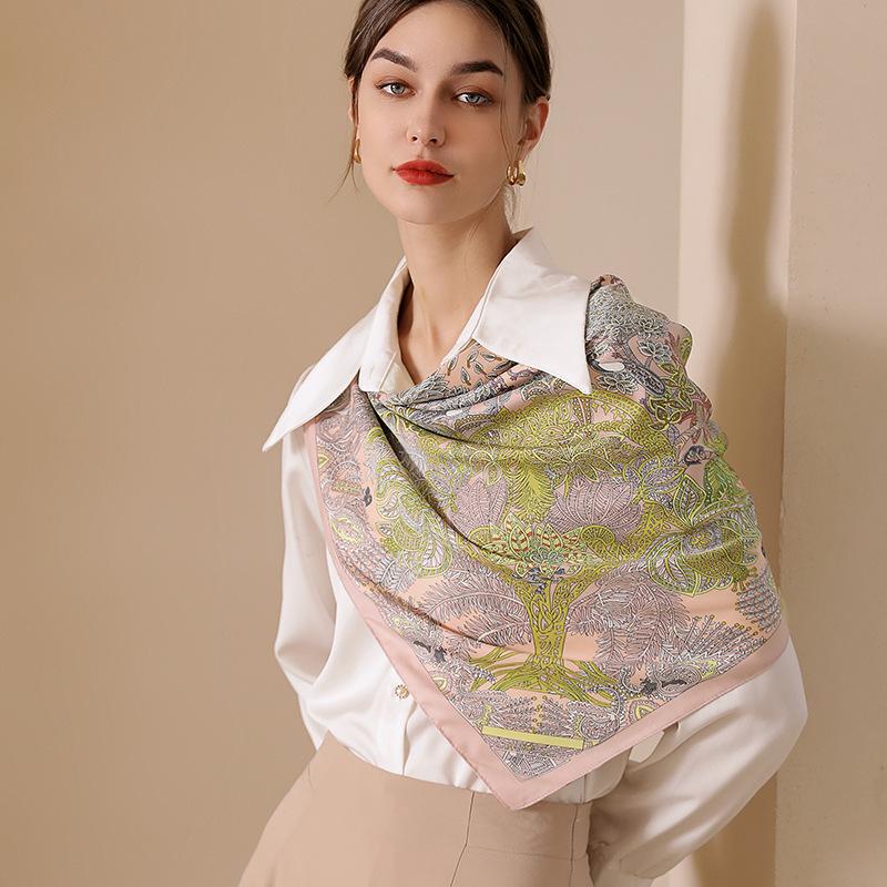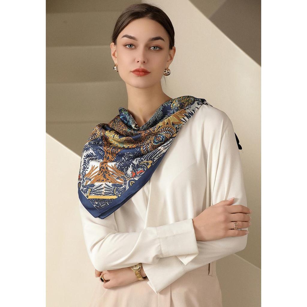 Изысканный женский шелковый шарф с квадратным антикварным принтом 90*90 см