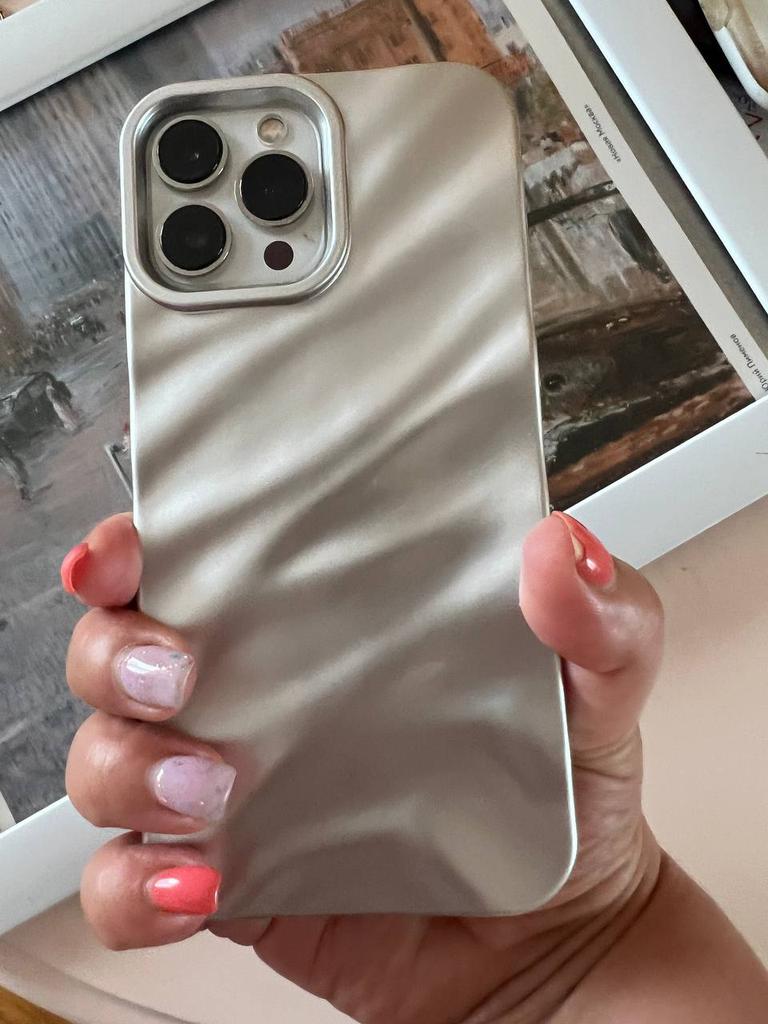 Классный чехол) Прикольный декор- волны. На 13 про Макс сел хорошо. Все прорези совпадают. Спереди края экрана защищает. Цвет черный, на выбор несколько вариантов. Доставка до Республики Бурятия заняла четыре недели. Wechat Tasha_Tao Удачных покупок 🤗
