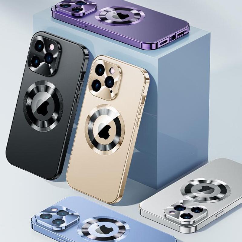 Роскошный металлический магнитный чехол с отверстием для логотипа для iPhone 16 15 14 13 12 Pro Max Plus, полноразмерный защитный чехол для камеры, сопоставимый с оригинальным чехлом
