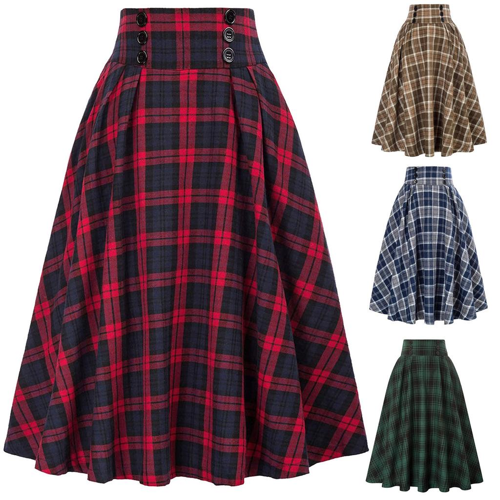 Женская повседневная свободная клетчатая большая юбка с высокой талией