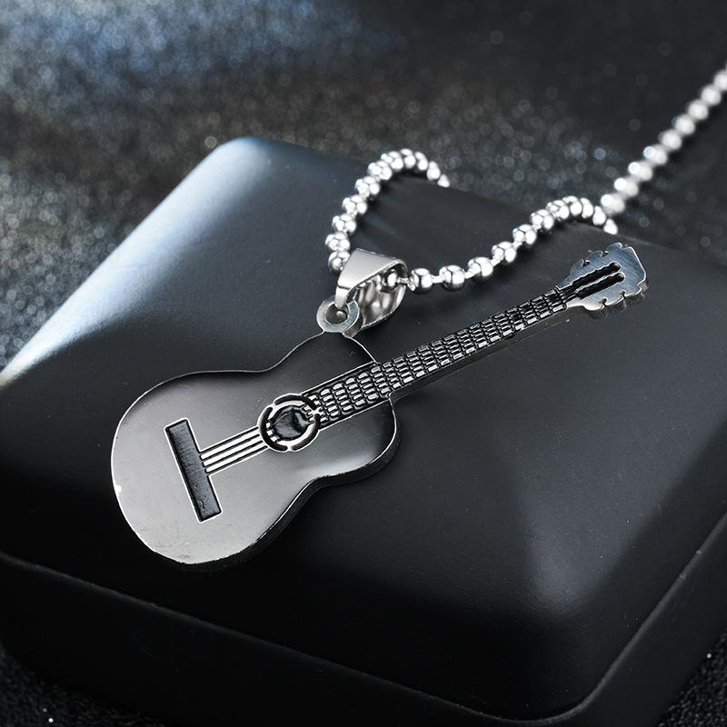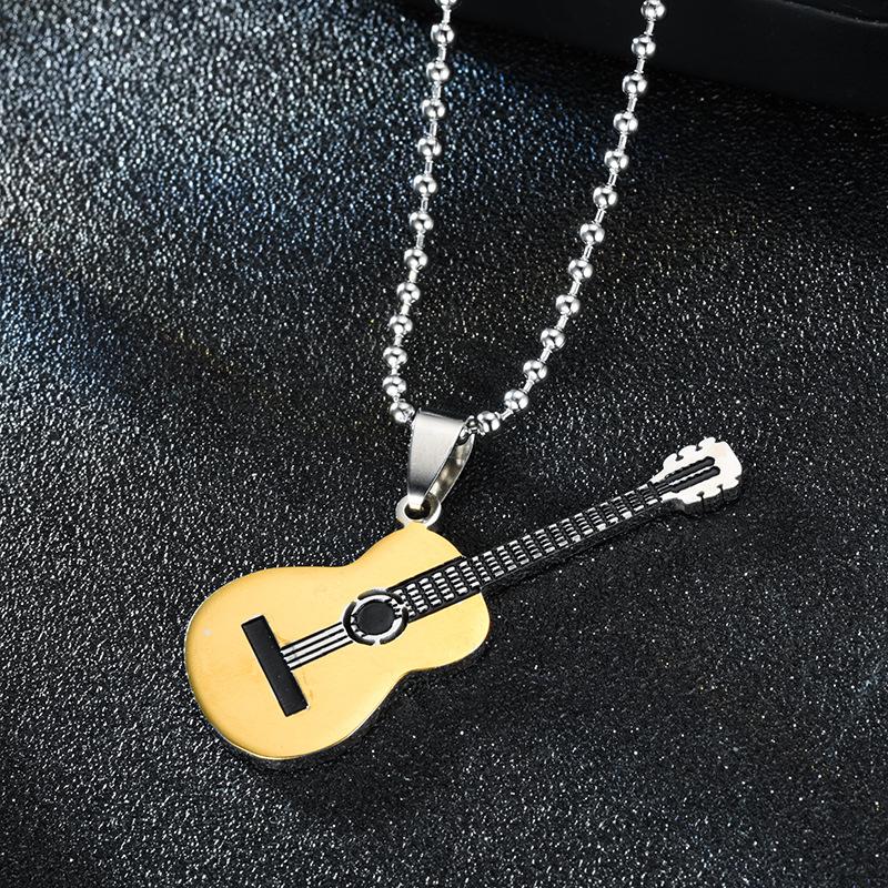 Модное панк-нержавеющая сталь, рок-музыка, кулон с гитарой, ожерелье для мужчин, цепочка из бисера, ожерелья, хип-хоп, индивидуальные вечерние украшения