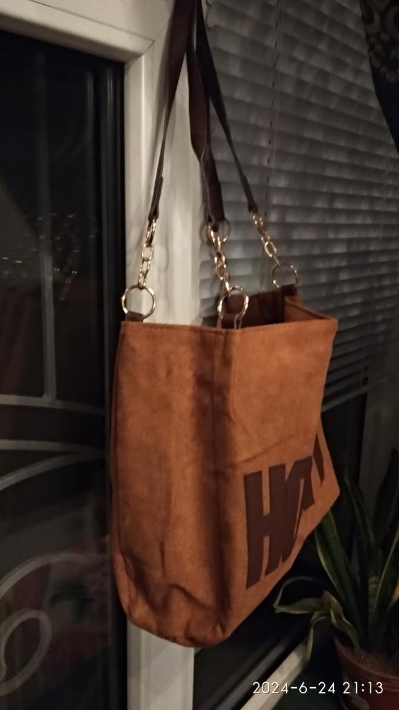 Доставка в Южный Казахстан 🇰🇿 почти в срок 👜 Летняя тканевая сумочка Ткань типа бумажного флиса, эффект замш, коричневого цвета Внутри черный качественный подклад Ручки коричневые, кожзам + цепи ➕Застёжка молния Лёгкая, по вместимости средняя ➖ Нет ни одного кармашка, но для меня не критично По качеству пока претензии нет Размер на фото Подробнее на видео 🎥 обзоре и видео 🎥 распаковке