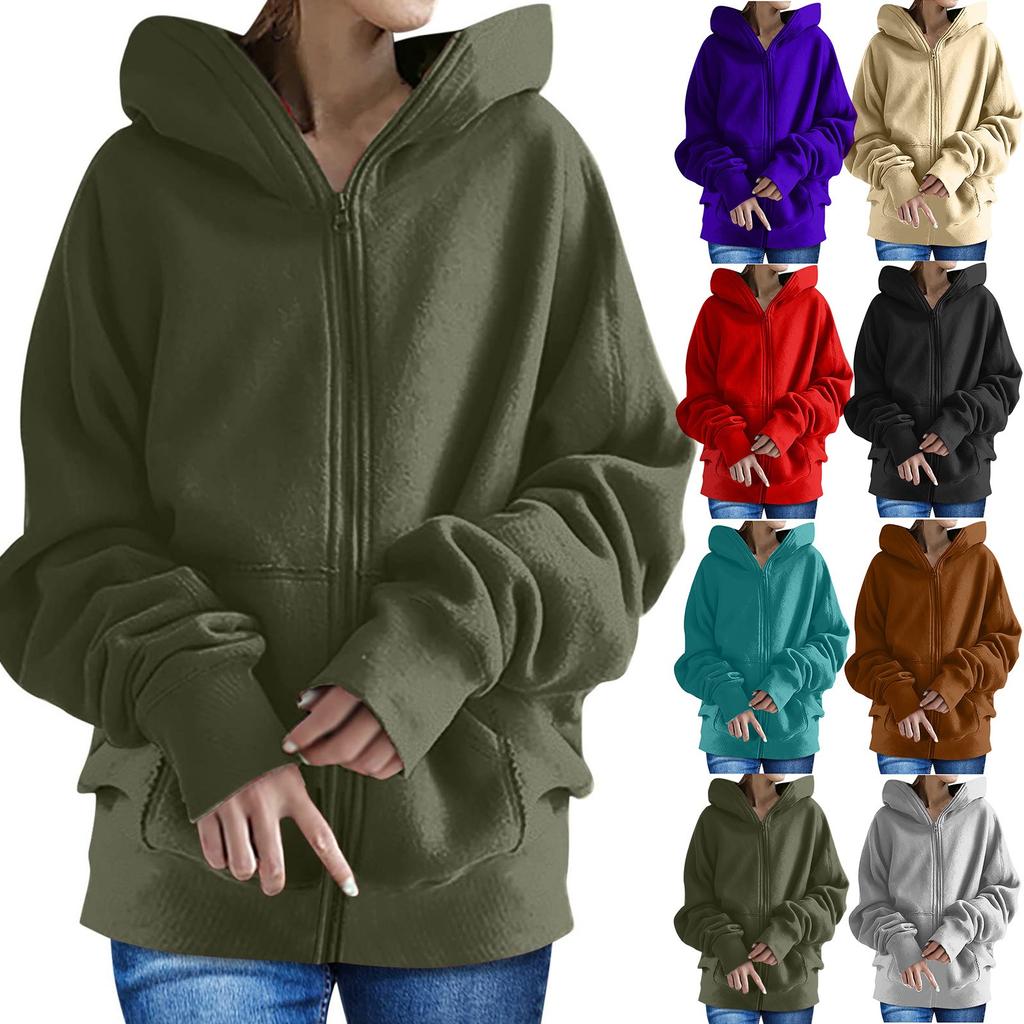 Женская толстовка на молнии больших размеров, зимняя толстовка с капюшоном большого размера и длинными рукавами, теплая свободная верхняя одежда — купить товар онлайн с бесплатной доставкой по всему миру!