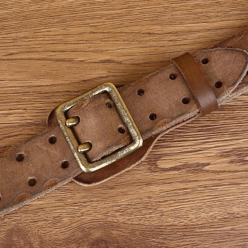 Ремень из натуральной кожи, мужской роскошный ремень, мужской ремень, новая мода, дикая защита от аллергии, ретро, двойная пряжка, высокое качество