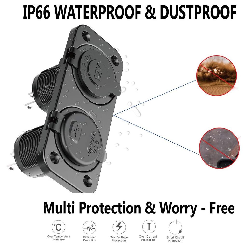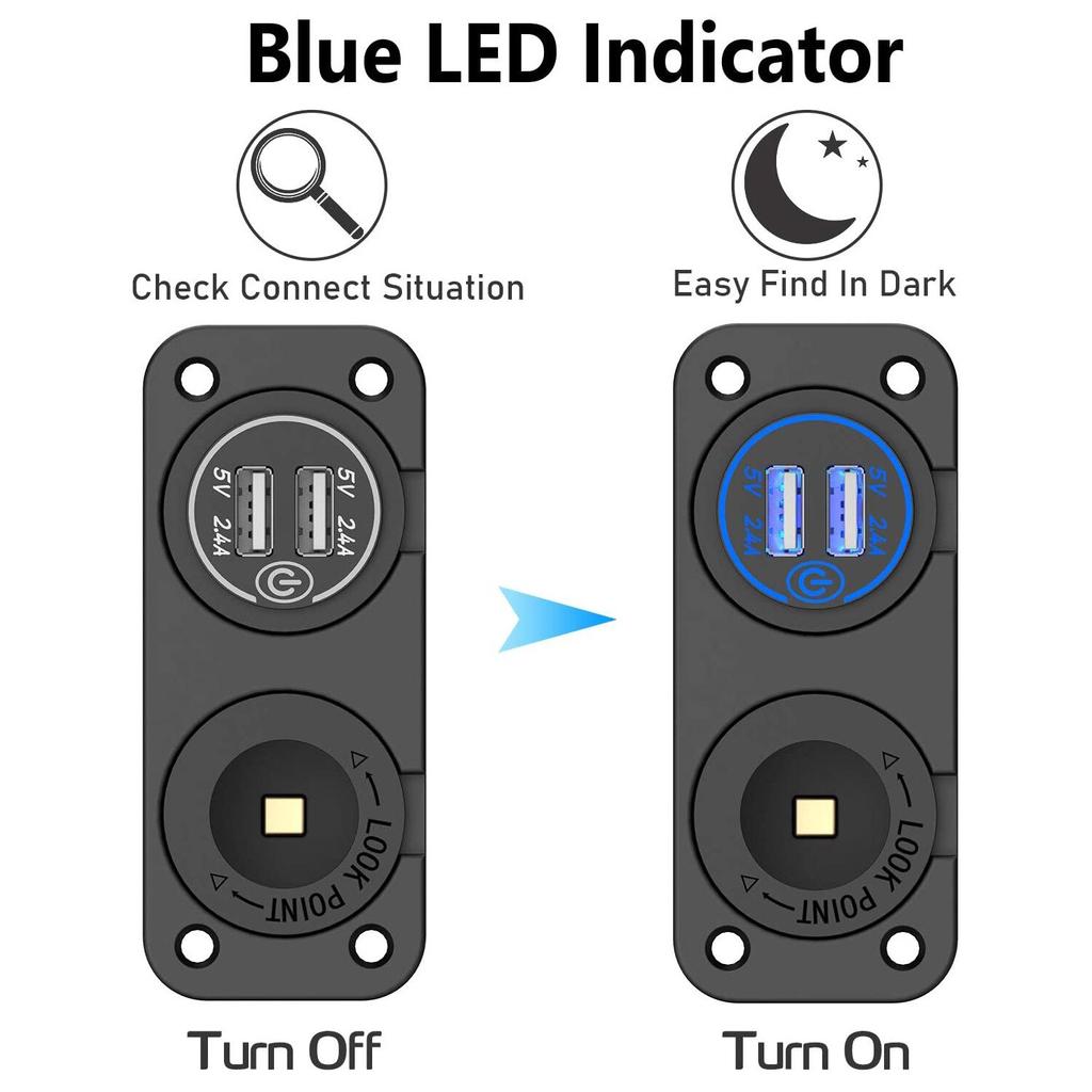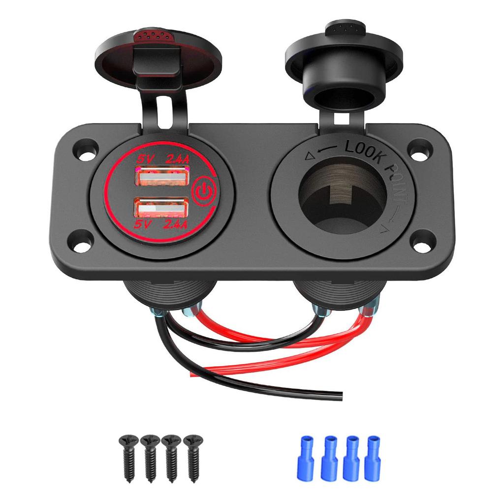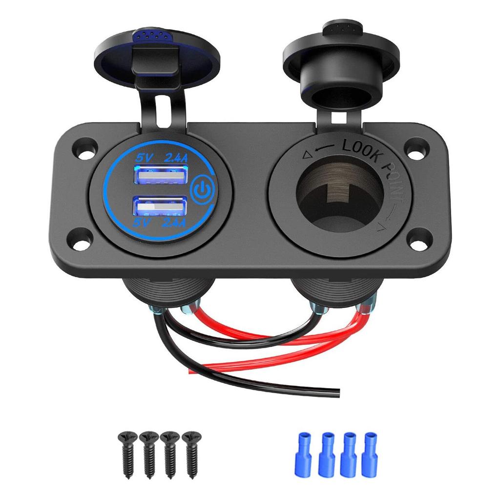Панель 2 в 1, 4,8 А, два порта USB, быстрое автомобильное зарядное устройство с сенсорным переключателем, розетка для морского транспорта, мотоцикла, квадроцикла