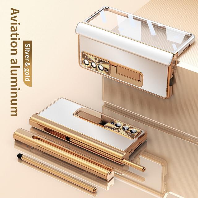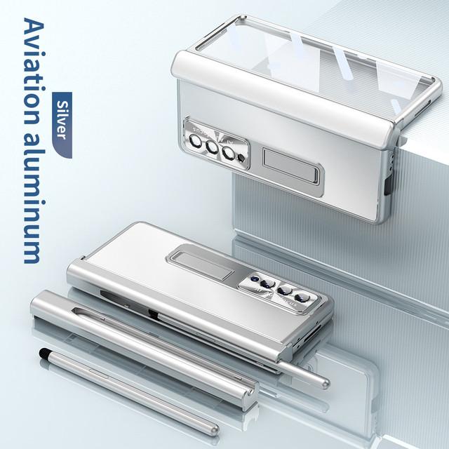 Противоударный алюминиевый чехол из закаленного стекла для Samsung Galaxy Z Fold 4 5g Fold4 Fold 3 Fold3 S, держатель для ручек, подставка для телефона, чехол