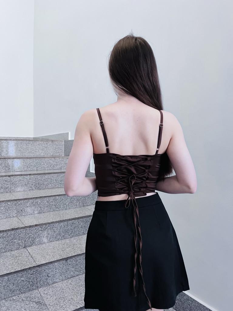 Симпатичный атласный топ🧡🧡🧡 Полностью соответствует описанию Сшит хорошо Лямки по длине регулируются По объёму регулируется за счет шнуровки на спине. На мне размер L, самый большой. И мне топ практически впритык. Так что топ максимум на 44 размер. Мне практически не пришлось его утягивать! Особенно по объёму под грудью Общий объем груди считаю мой предел для этого топа. Грудь может быть больше, но при условии, что спина уже! Ткань в зоне груди в 2 слоя, плюс ещё двойная полоса ткани в нижней части груди, дополнительная поддержка для груди. По талии есть небольшой запас! Мои параметры ОГ 92, ОПГ 77, ОТ 68.