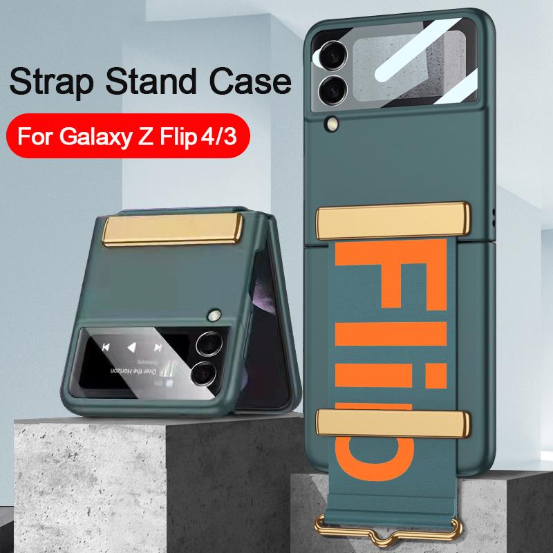 Защитный стеклянный чехол для объектива камеры с ремешком для Samsung Galaxy Z Flip 4 3 5g, чехол-браслет, пластиковая задняя крышка для ПК, Z Flip4 Capa