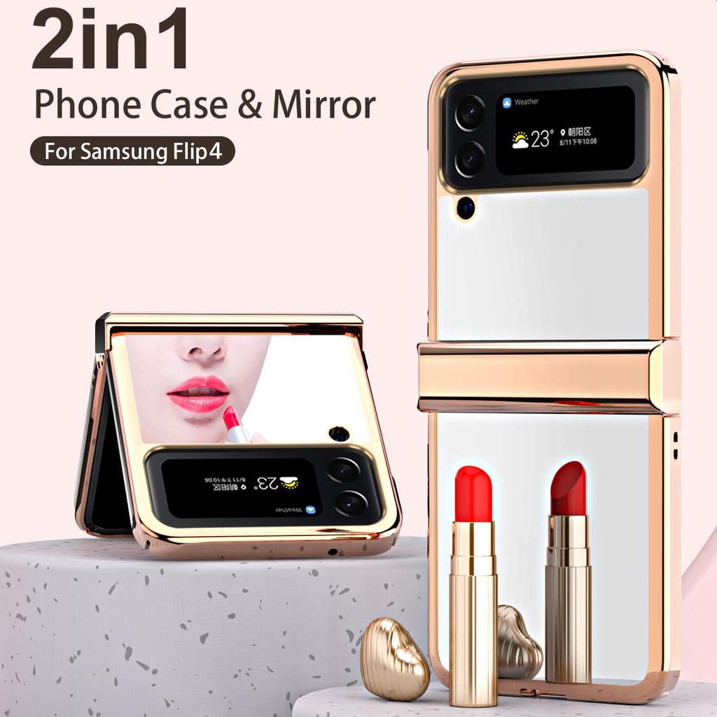 Чехол для Samsung Galaxy Z Flip 4 с защитным светом на петлях, роскошный зеркальный чехол с гальваническим покрытием для Samsung Z Flip 4, 5g, чехол