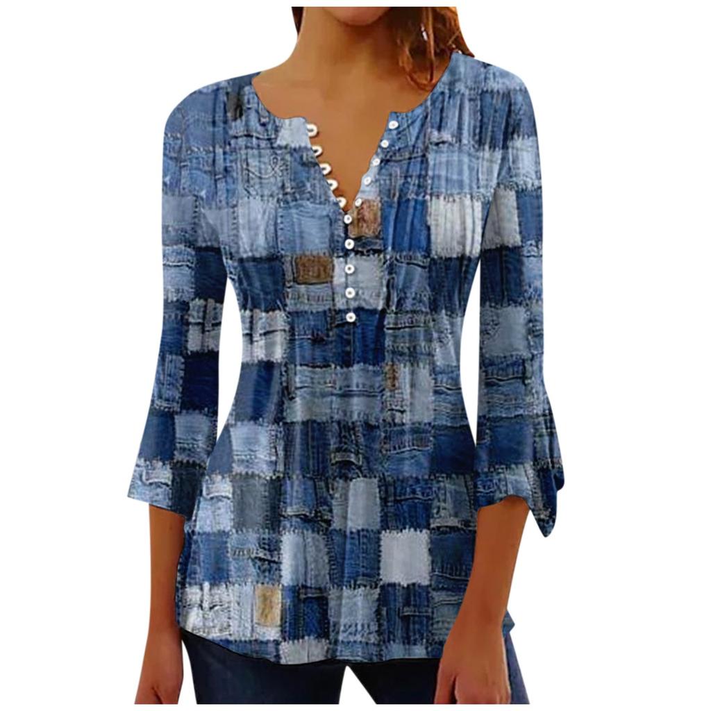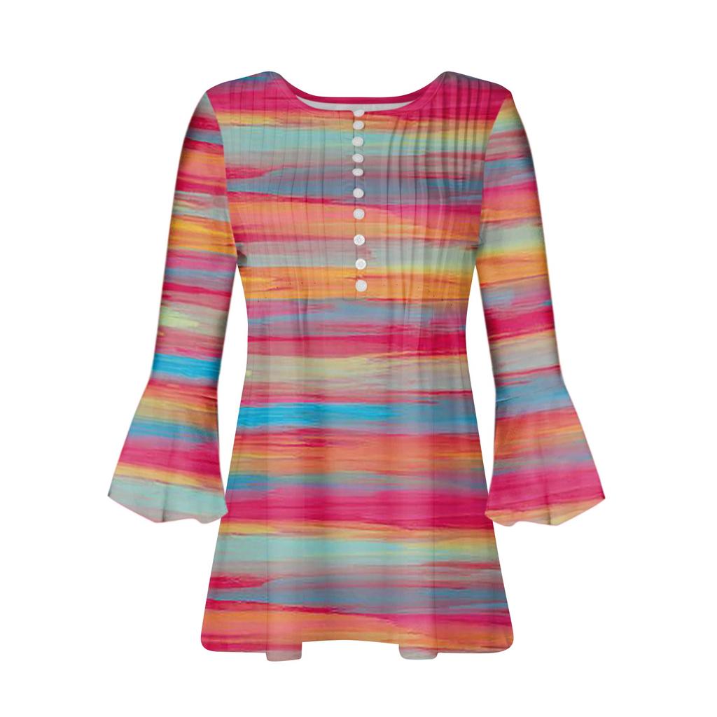 Женский повседневный топ на пуговицах с длинными рукавами и v-образным вырезом в полоску с принтом