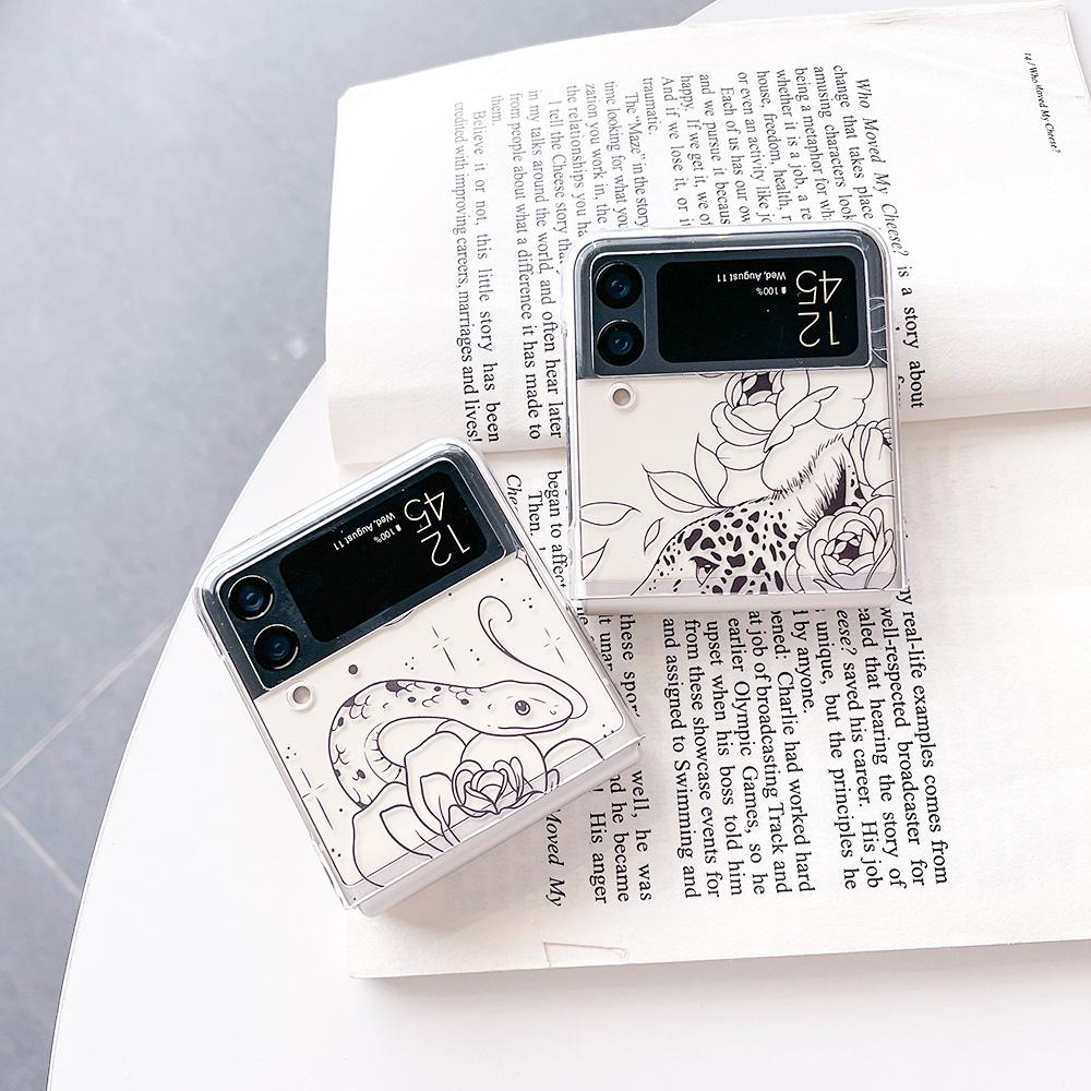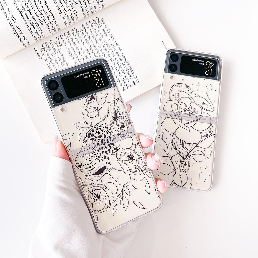 Для Samsung Galaxy Z Flip 4 3 Чехол Line Animals Painted Прозрачный противоударный жесткий чехол для Samsung Z Flip4 Flip3 5g Чехол