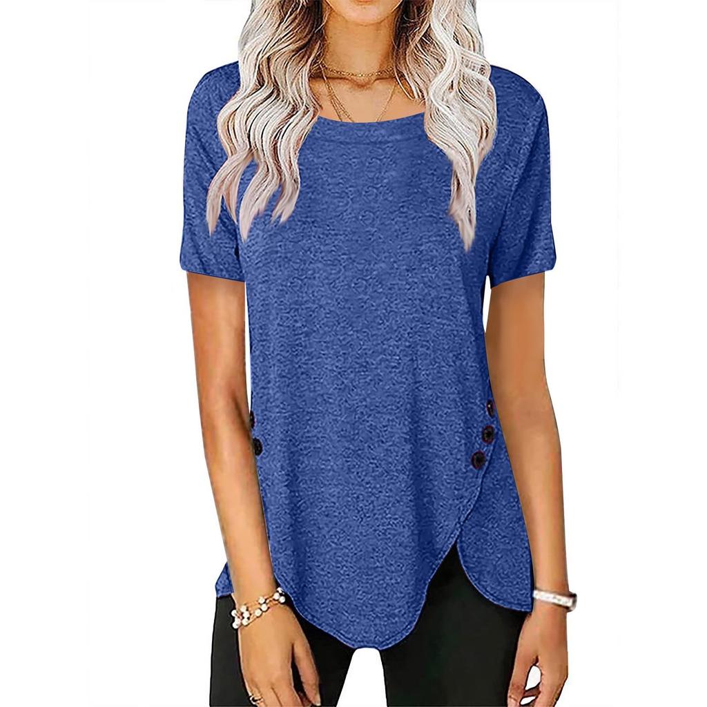 Модная женская повседневная однотонная свободная футболка с коротким рукавом и пуговицами