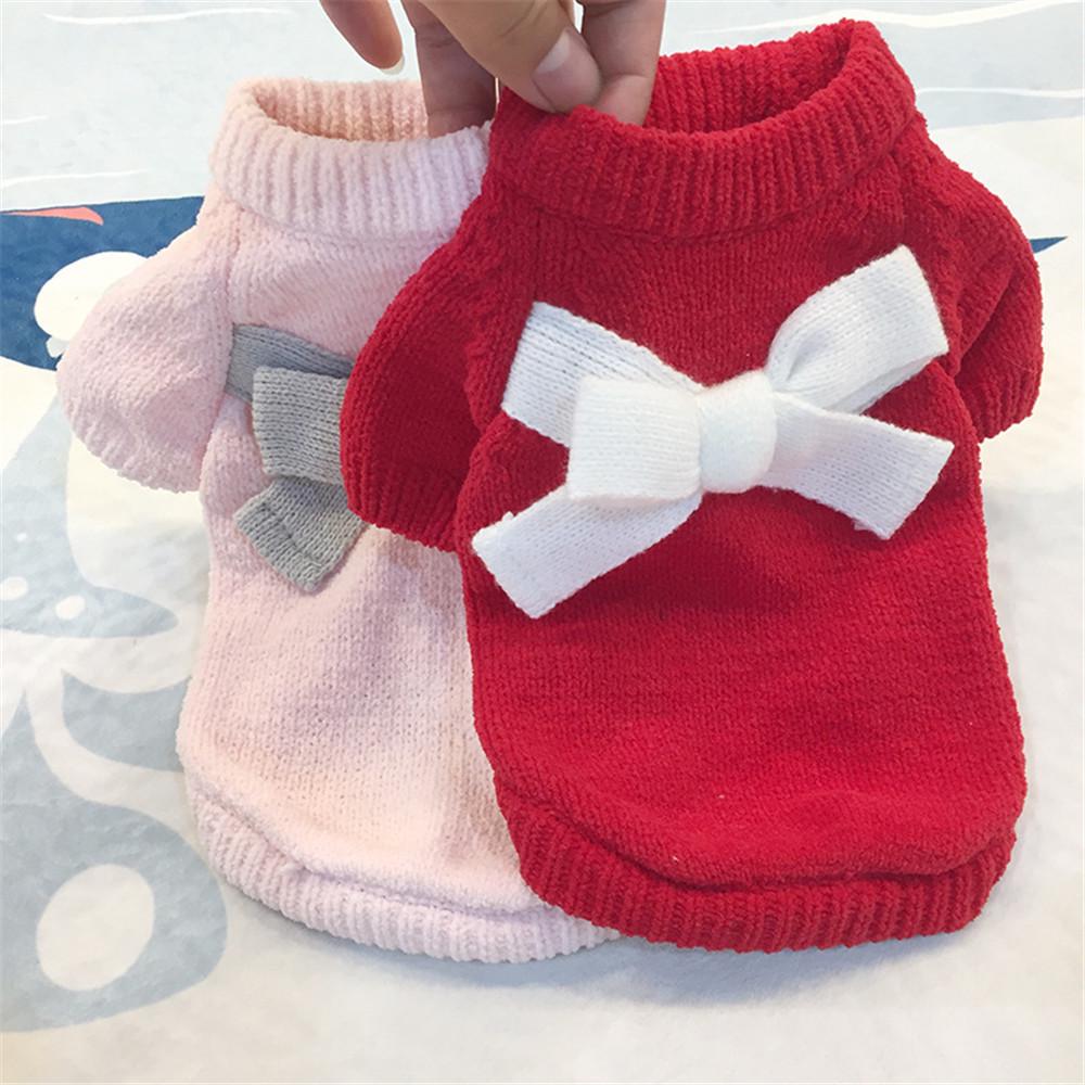 Одежда для домашних животных, однотонный свитер с бантом для щенка, милый свитер на осень и зиму — купить товар онлайн с бесплатной доставкой по всему миру!