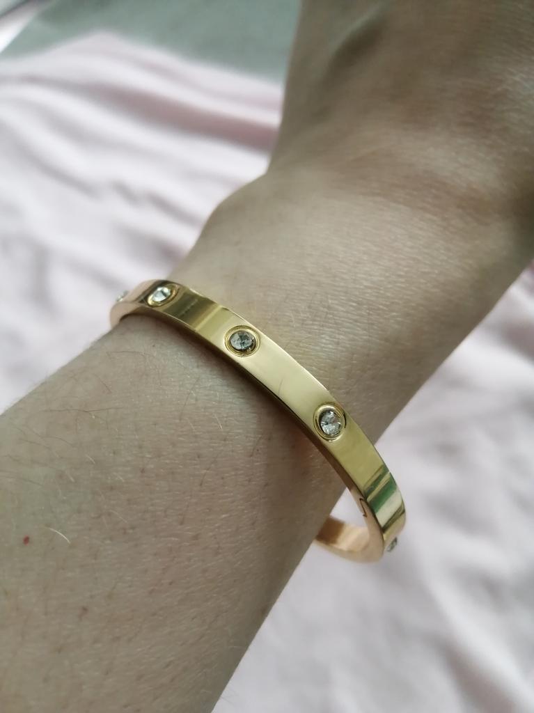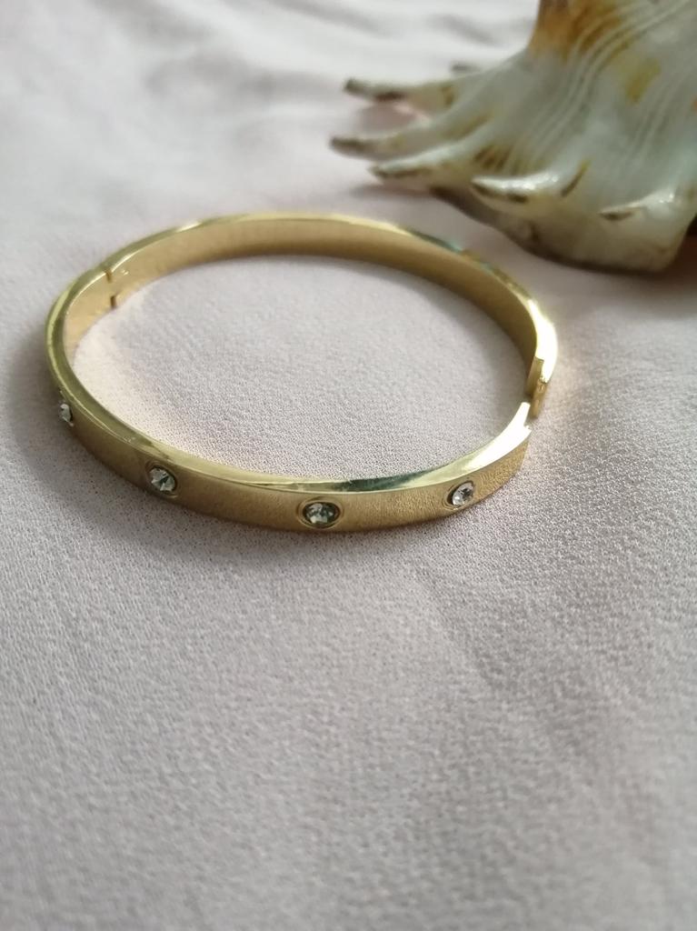 БРАСЛЕТ-МАНЖЕТА ИЗ НЕРЖАВЕЮЩЕЙ СТАЛИ С КРИСТАЛЛАМИ. Цвет ЗОЛОТОЙ. 🔹Лаконичное и универсальное украшение в золотом цвете. Браслет украшен 10 кристаллами. 🔹Имеет форму ОВАЛА, подойдёт на тонкое запястье. Застежка надёжная. Ношу браслеты давно и с удовольствием. И этот браслет не стал исключением. Смело рекомендую! 🔹Качество изделий из нержавеющей стали проверено временем. Они служат долго и при правильном уходе не теряют своего внешнего вида и красоты. Благодарю продавца и Joom💞. Сроки заказа в сборной посылке: 04.04.2024 - 29.04.2024.