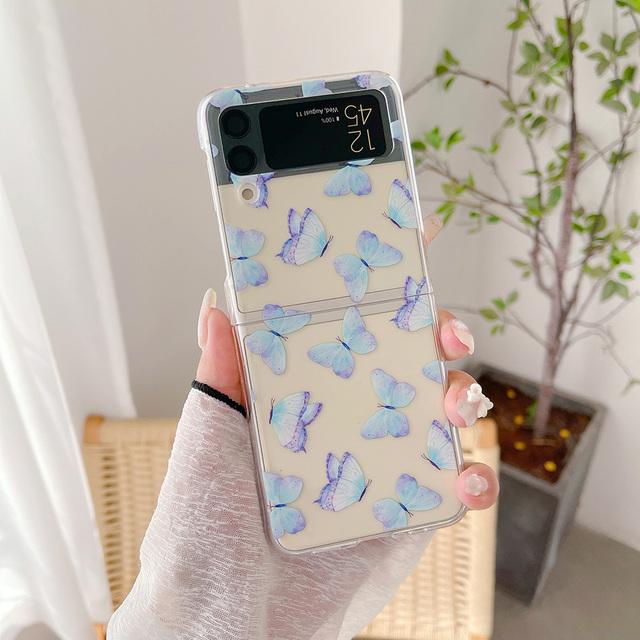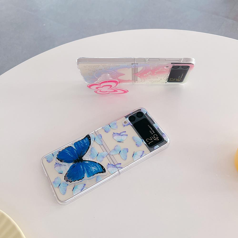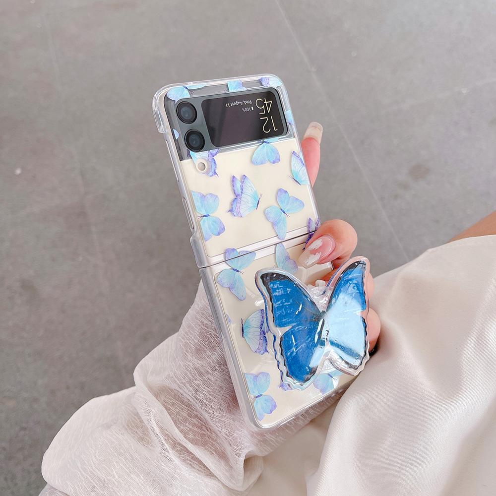 Чехол для Samsung Z Flip 4, прозрачный чехол с градиентом и бабочкой с держателем для Samsung Z Flip 3 Zflip4, противоударная жесткая задняя крышка