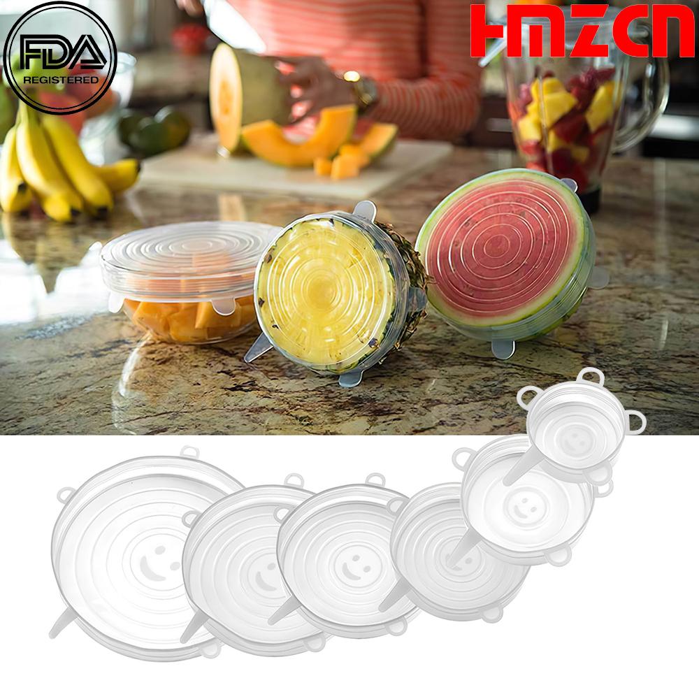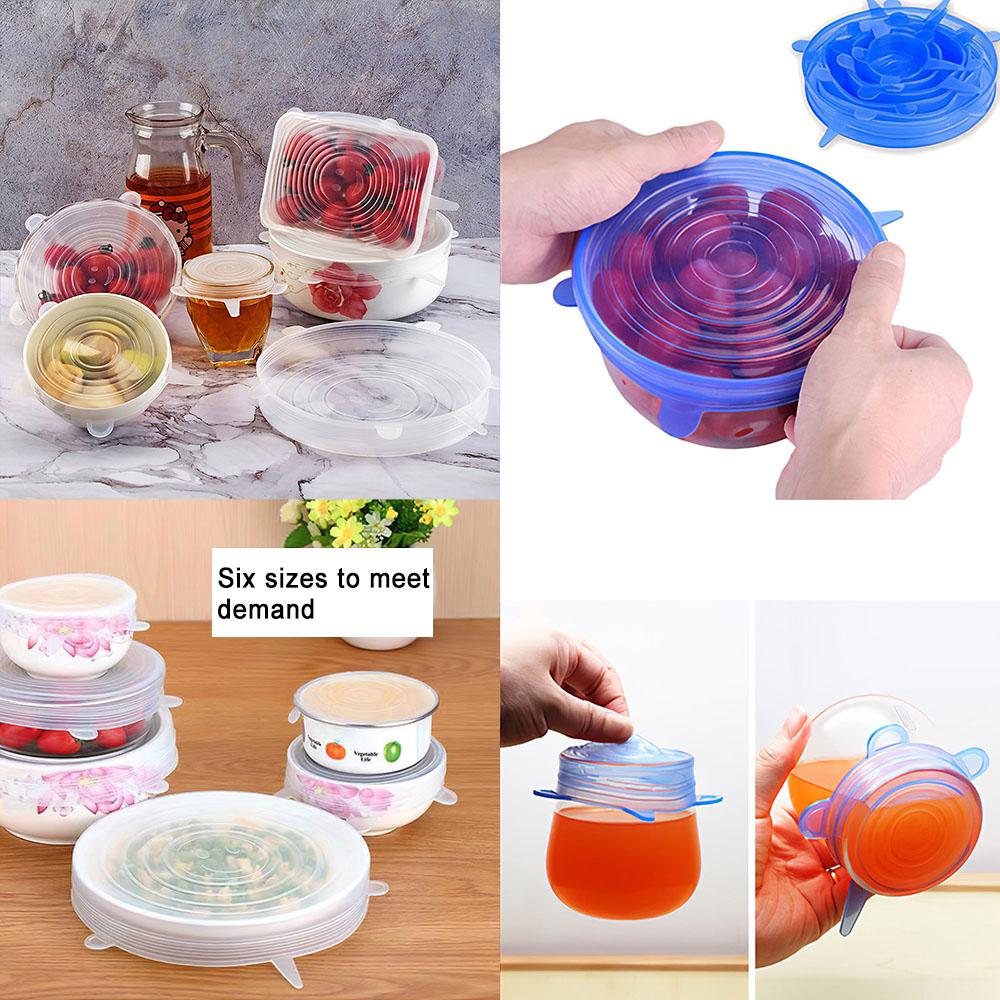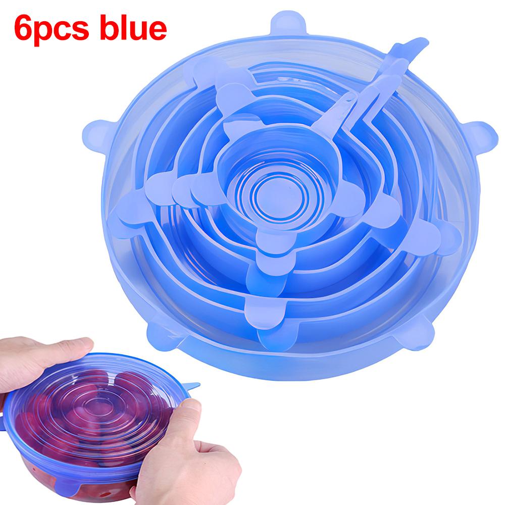 6 шт./комплект многоразовых силиконовых крышек для еды, эластичные крышки для мисок, чехлы для микроволновки, кухонная пленка, сохраняющие свежесть, силиконовые крышки