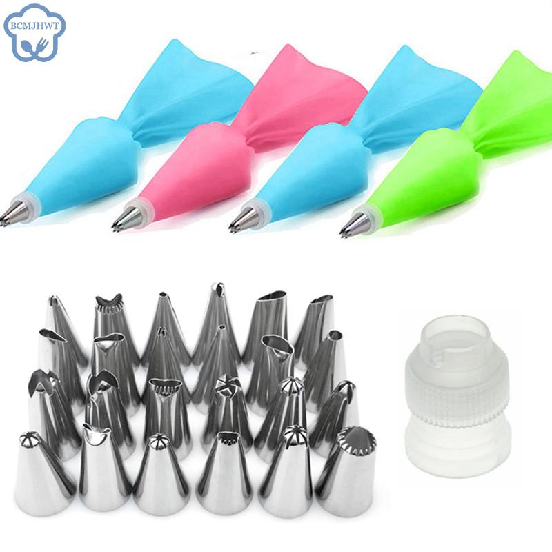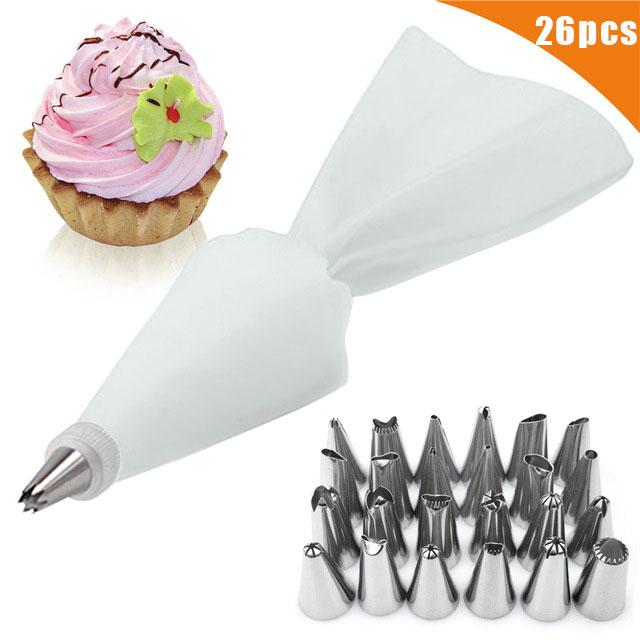 8/26 шт./компл., силиконовые насадки для кондитерских мешков, кухонная глазурь для торта, окантовка для крема, инструменты для украшения торта, многоразовые кондитерские мешки + 24 набора насадок