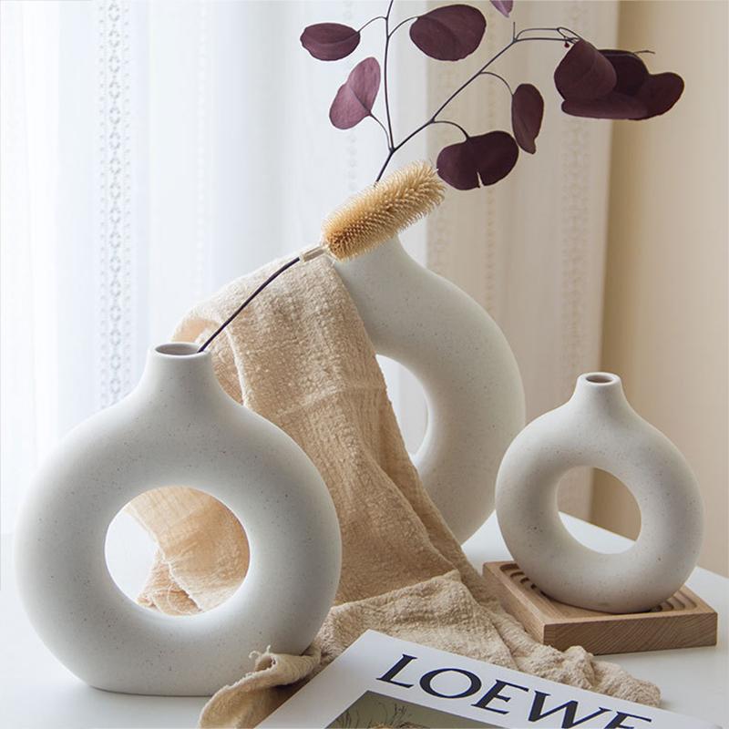 Nordic круглая полая керамическая ваза пончики цветочный горшок украшения дома аксессуары офисный рабочий стол гостиная интерьер декор подарок