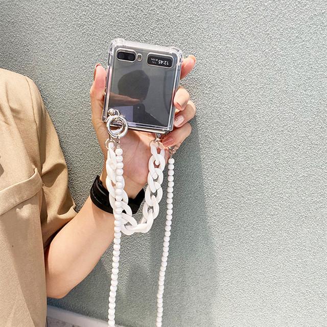 Милый белый массивный браслет-цепочка + длинный шариковый ремешок, противоударный прозрачный чехол для Samsung Galaxy Z Flip 4 5g, защитный чехол — купить товар онлайн с бесплатной доставкой по всему миру!