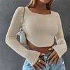 Футболка с длинным рукавом, женская сексуальная тонкая уличная одежда, вязаный укороченный топ, корейская мода, весенне-осенняя короткая узкая футболка