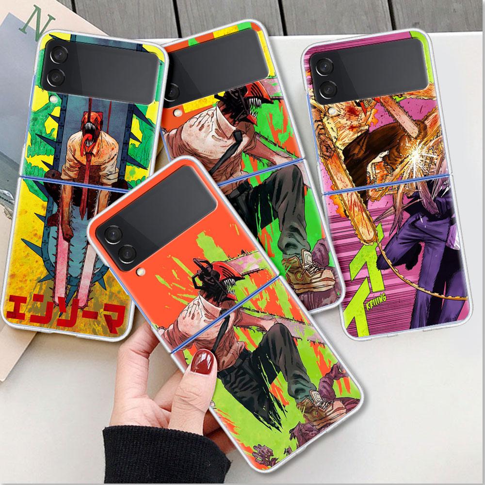 Милый чехол с рисунком человека бензопилы для Samsung Galaxy Z Flip 4 5g, прозрачный жесткий чехол для мобильного телефона Zflip, прозрачный чехол для ПК