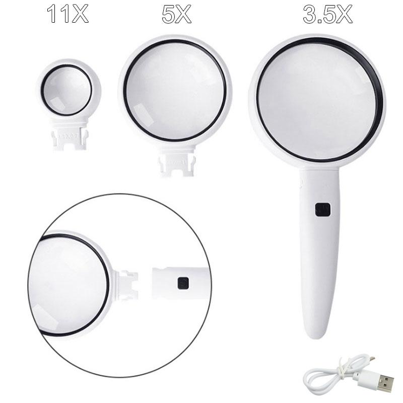 3,5x5x11x сменные 3 линзы увеличительное стекло для чтения перезаряжаемая ручная лупа с подсветкой F идентификация штампа