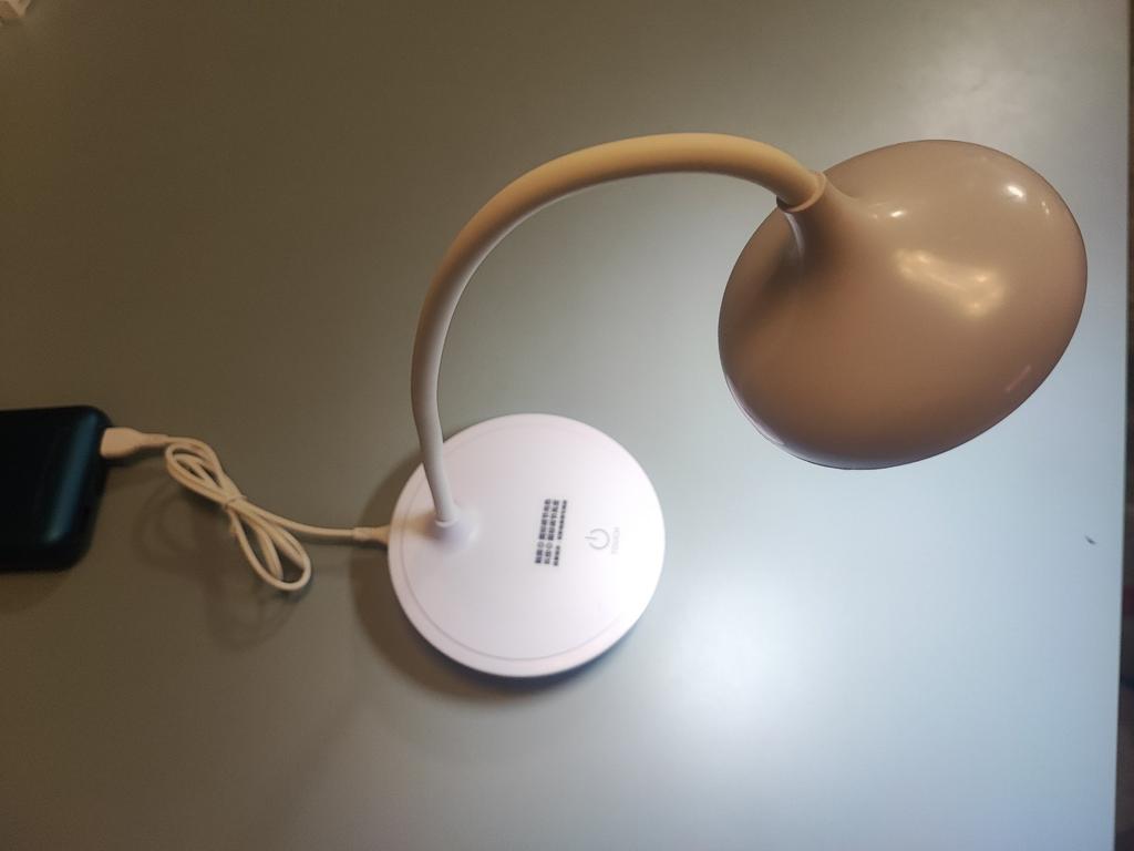 Хорошая настольная лампа, легкая, приятный дизайн, не очень яркая, свет можно регулировать, идёт в комплекте с подзарядником