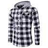 Мужская осенняя повседневная клетчатая рубашка с длинным рукавом, пуловер, рубашка, блузка с капюшоном