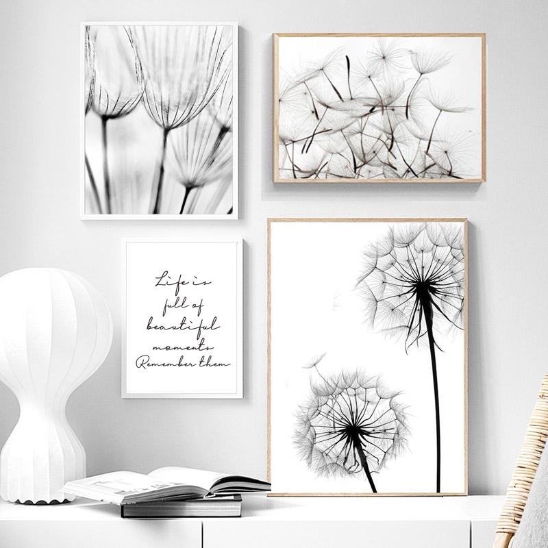 Плакат с одуванчиком, черно-белый холст, художественная живопись, украшение, цитата из жизни, постеры на скандинавскую тему и принт, настенные панно для спальни